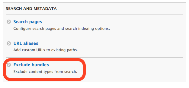 But what is the deal with exclude_bundles.admin.config? Shouldn't it be /admin/config/search/bundles or some other path? Not in Drupal 8, and this is where routing comes into play.